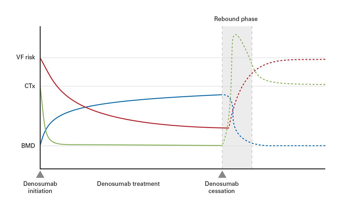 Nach Absetzen von Denosumab ist eine anschließende zeitgerechte Therapie zur Verhinderung des Rebound-Knochenumsatzes erforderlich.