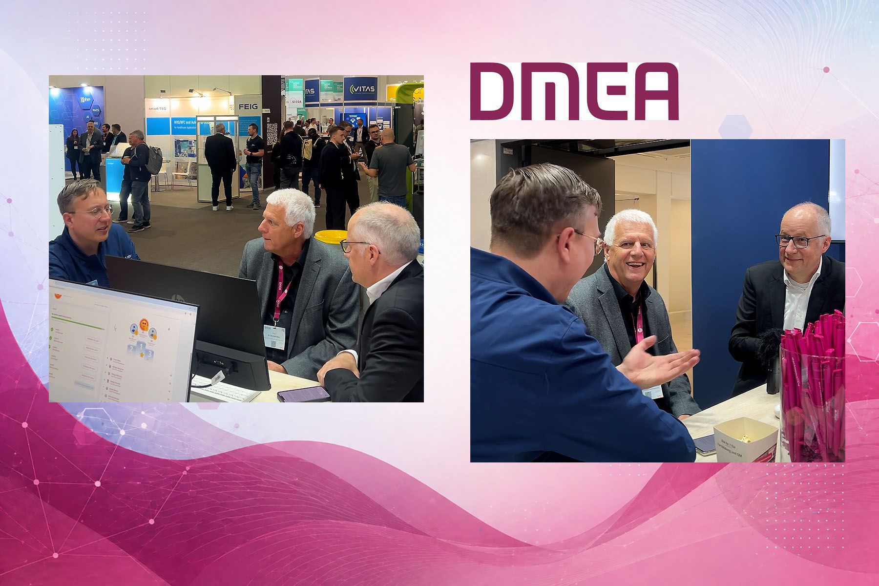 Wohin geht die Reise der digitalen Pflege? Dr. Reinhard Merz (MiM-Verlag/arztCME, Mitte) im Gespräch mit Philip Kraul (Pflegecampus, links) und Klaus Mueller (Medice, rechts).